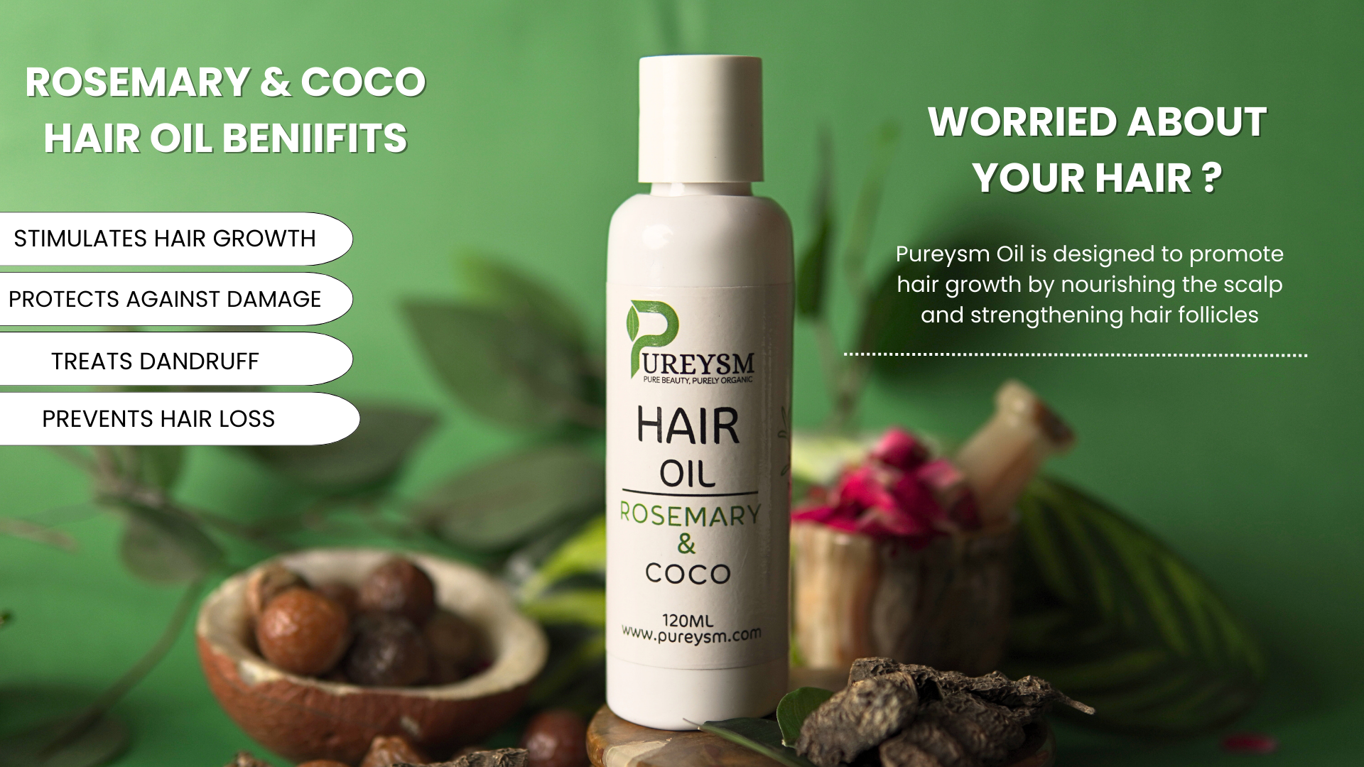 Tired of hair problems? Pureysm Organic Rosemary Hair Oil 🌿 is the natural solution for you! Say goodbye to breakage and dullness, hello to shine and growth ✨