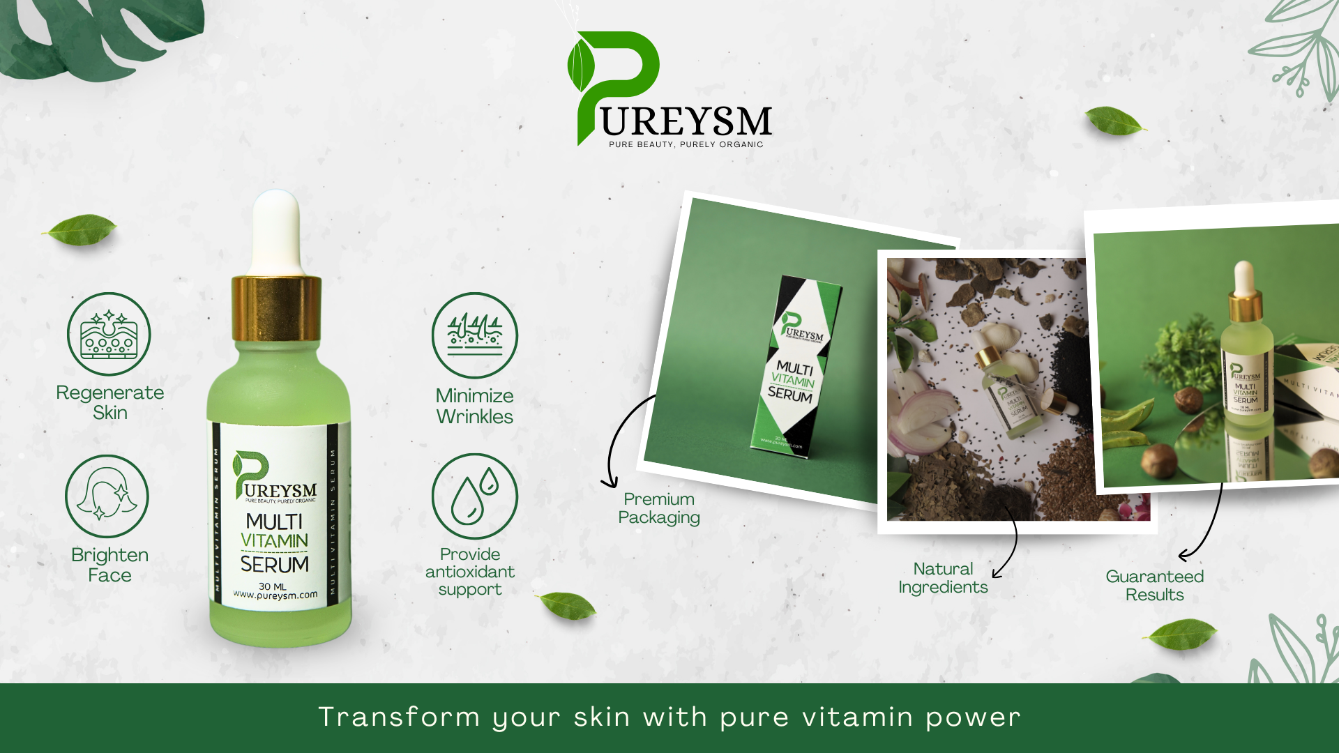 At Pureysm, we believe in the power of nature to rejuvenate and revitalize your skin. Our signature product, the "Hair Biotin Oil And Multi Vitamin Serum," is crafted with care using only the finest organic ingredients to help you achieve radiant, youthful-looking skin.